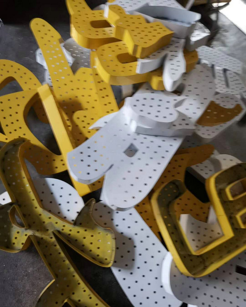 發光字是由發光麵板、圍邊、LED光源,以及背板組成的。當然有的背發光字。則是上金屬字殼和LED光源兩部分構成。今天說下一般平麵發光字的製作。